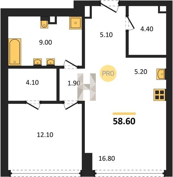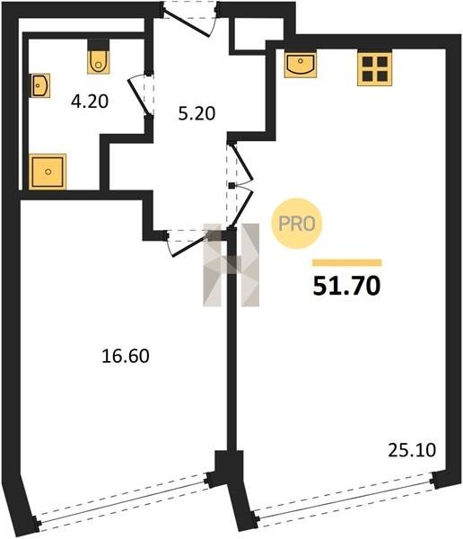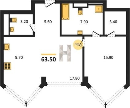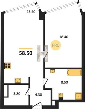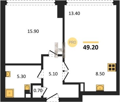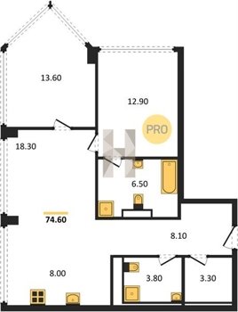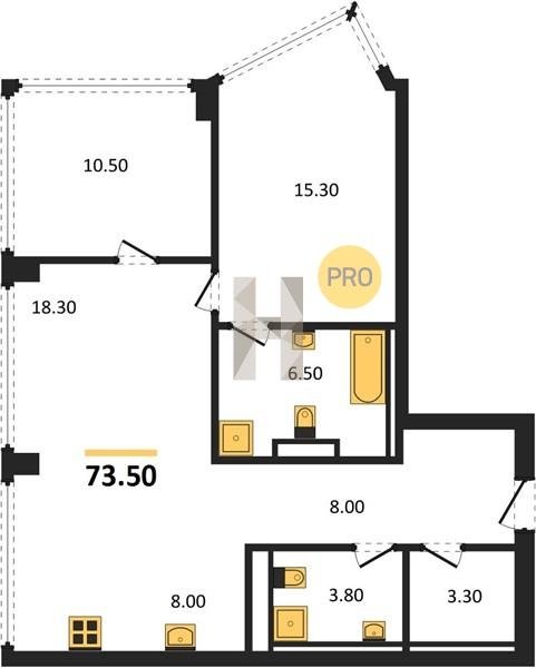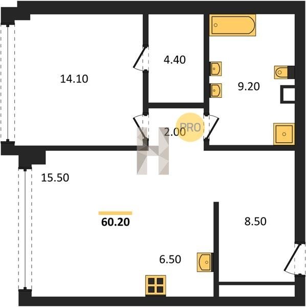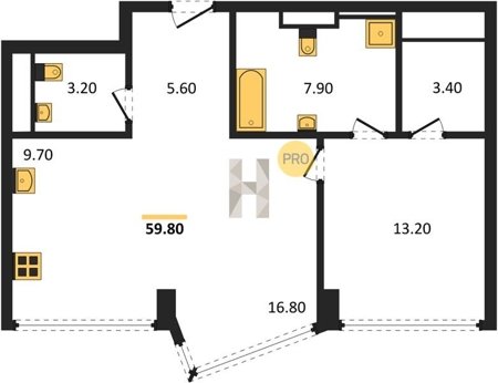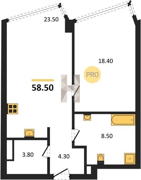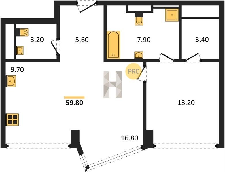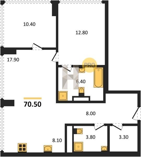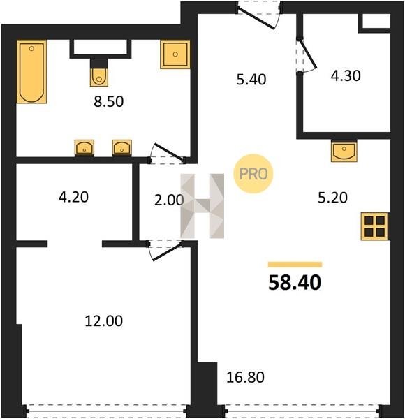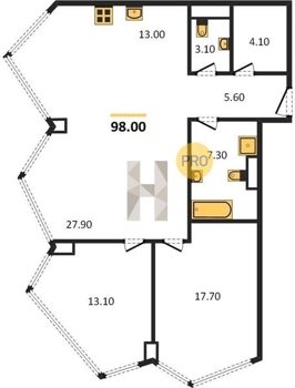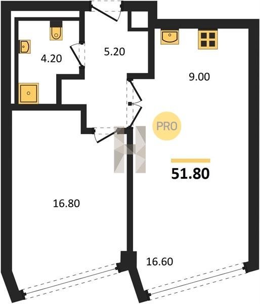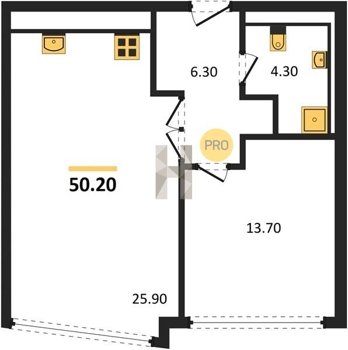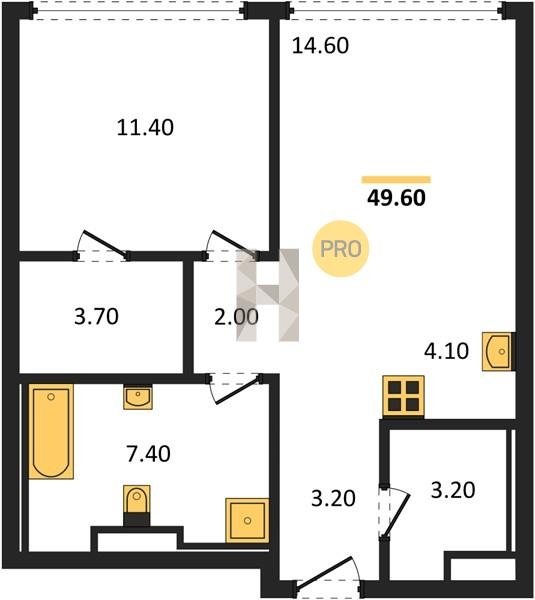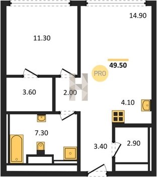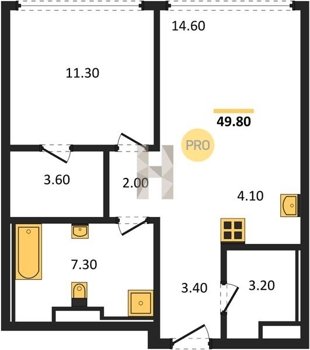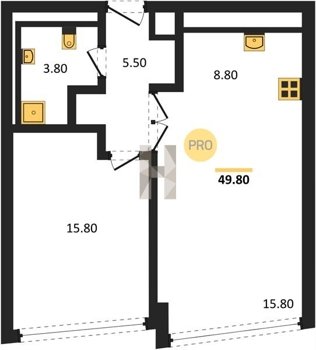Площадь от 49.8 м2