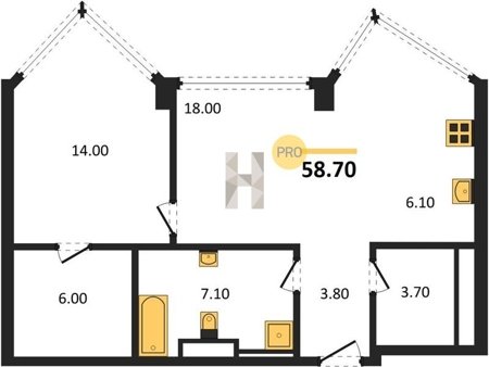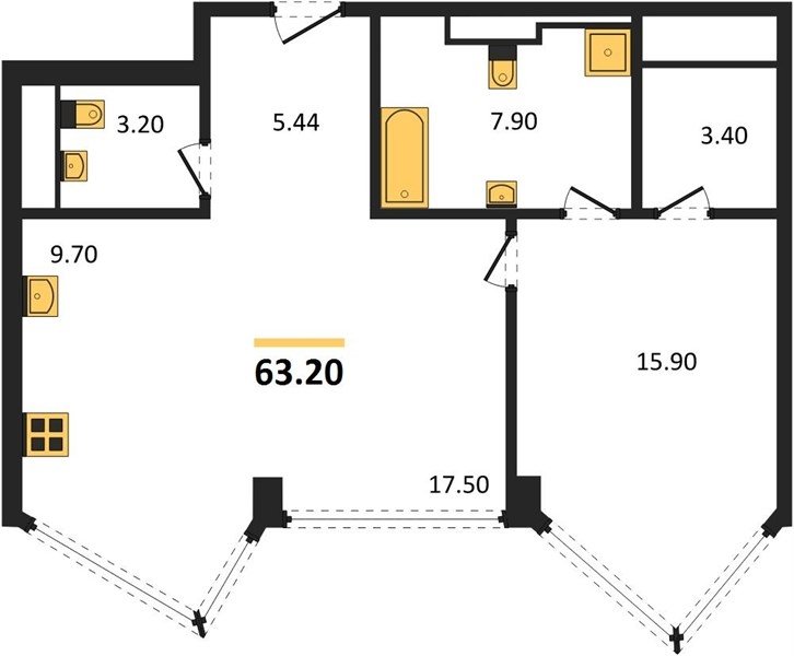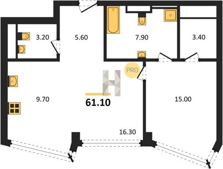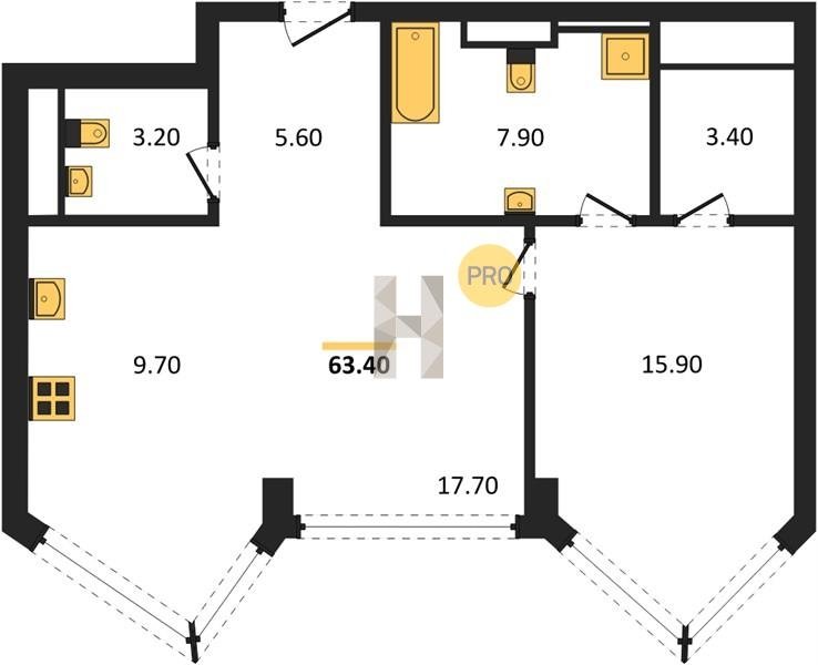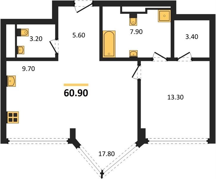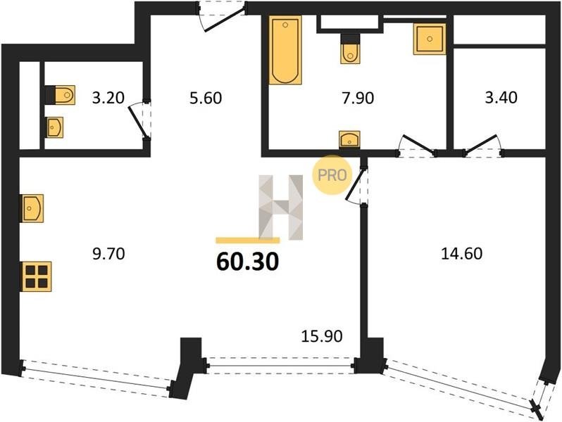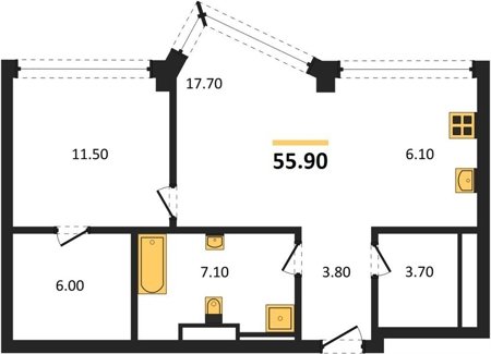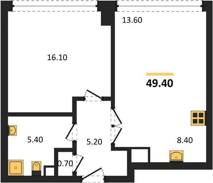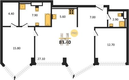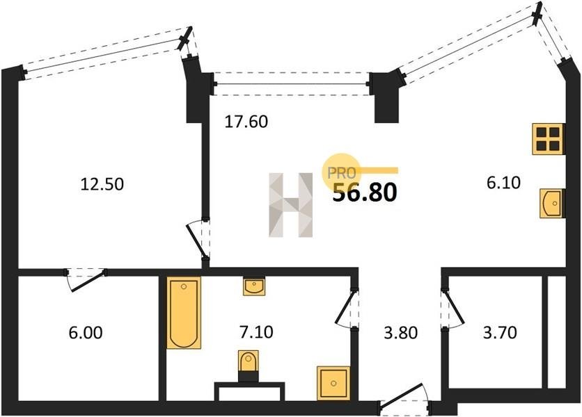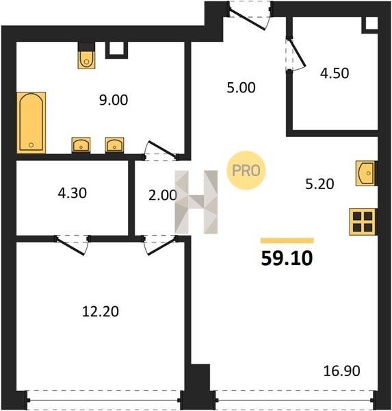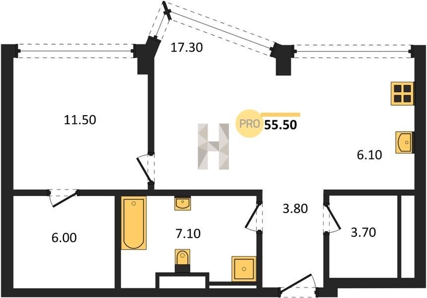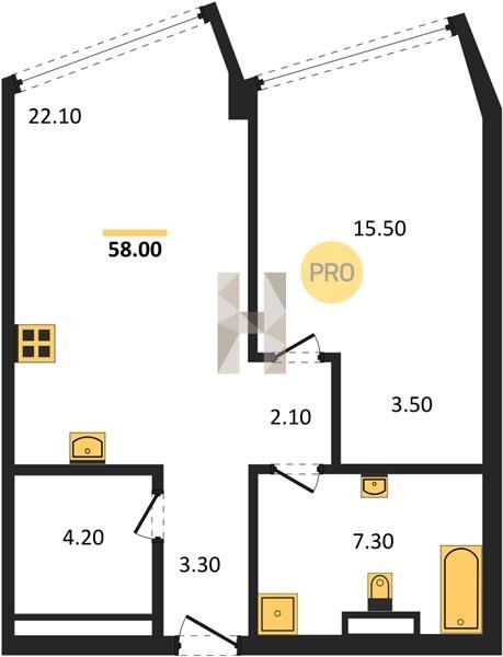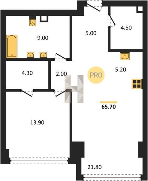 Площадь от 49.8 м2