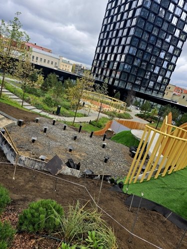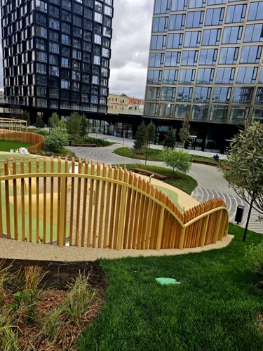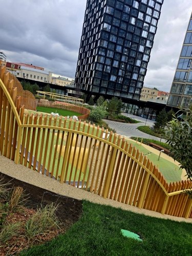 Здесь есть живописный большой внутренний двор (2 га), в центре которого будет разбит сад. Здесь расположатся площадки для разных возрастных групп, где можно насладиться тишиной, пообщаться друг с другом, сделать утреннюю зарядку или просто отдохнуть.