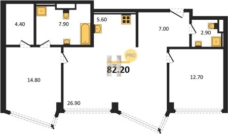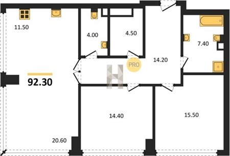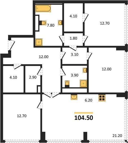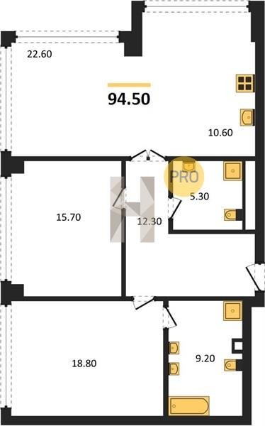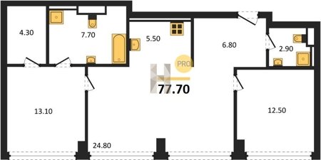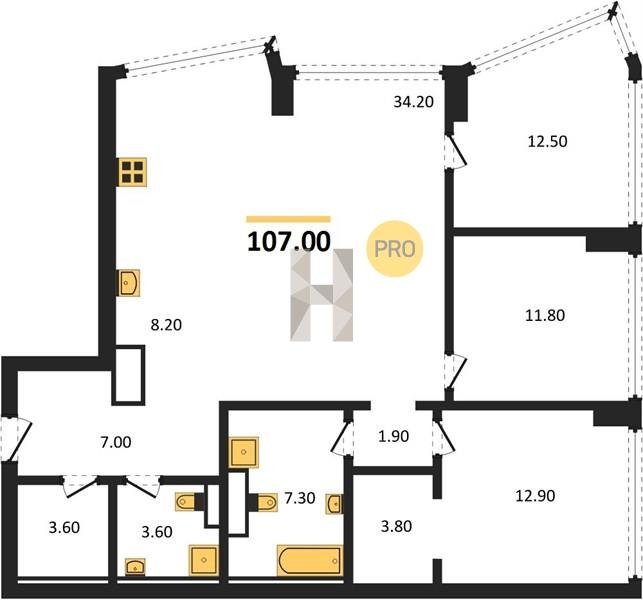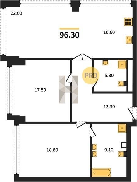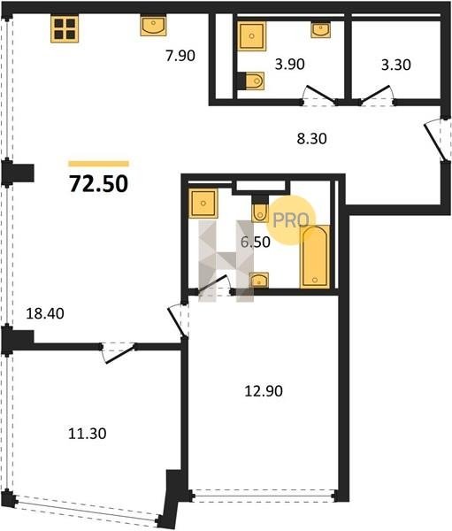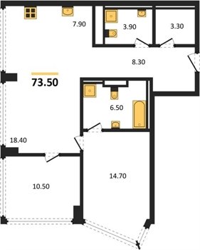Надежные и безукоризненно ровные полы обеспечивают монолитная железобетонная плита толщиной 200 мм, слой двухсоставного шумоизоляционного материала и цементно-песчаная стяжка по всей площади квартиры. В помещениях установлены разные уровни — на случай, если вы захотите положить паркет в жилых помещениях и сделать тёплый пол в ванных комнатах.