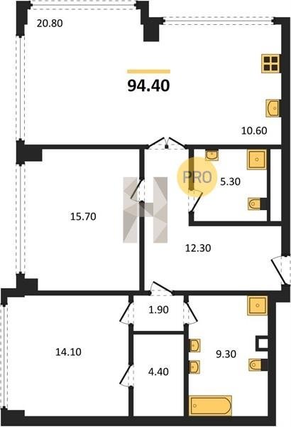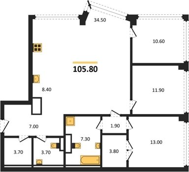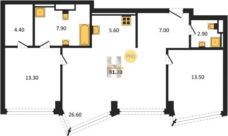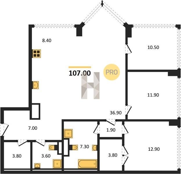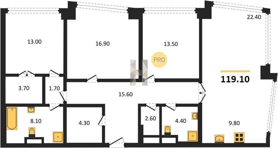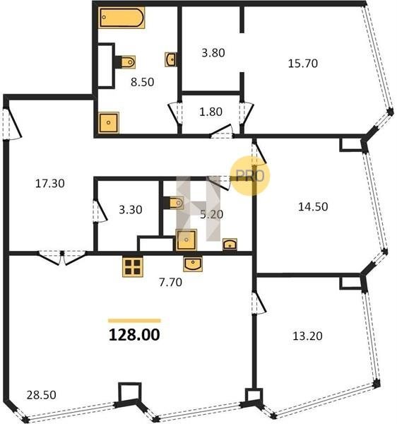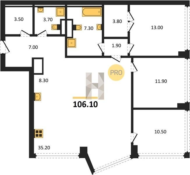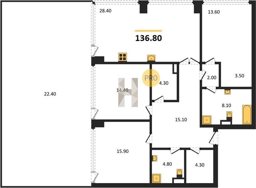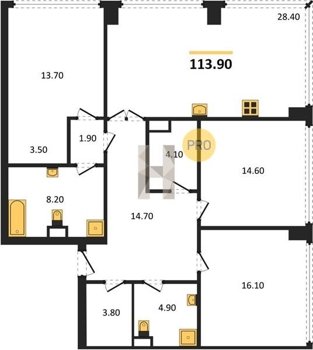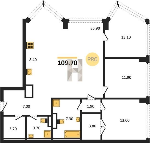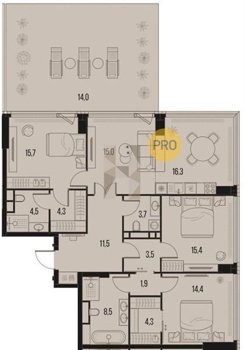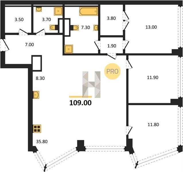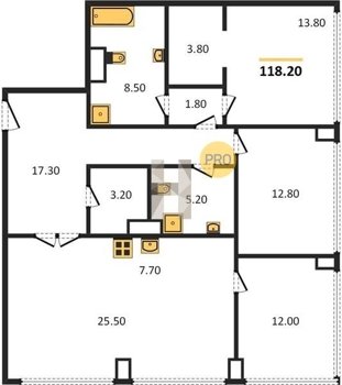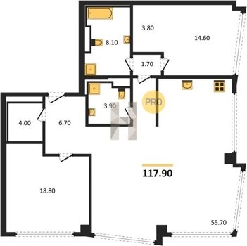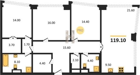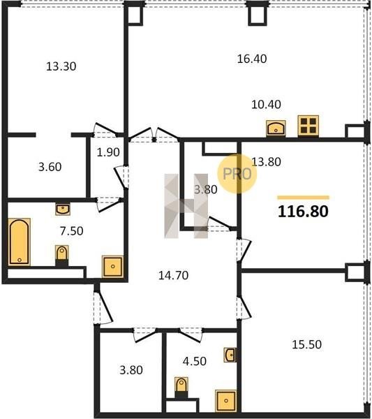 Площадь от 116.8 м2