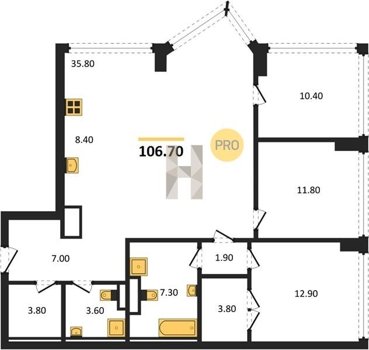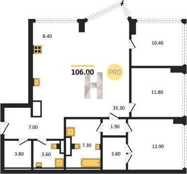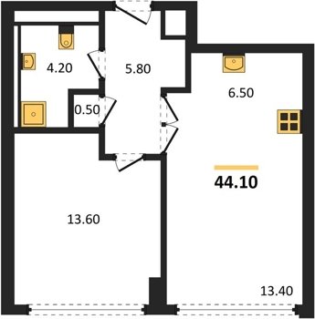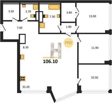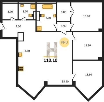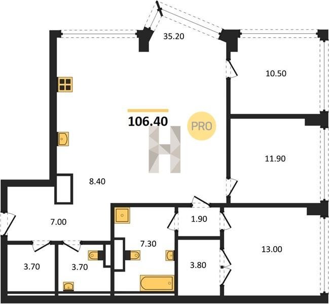 Площадь от 35.4 м2