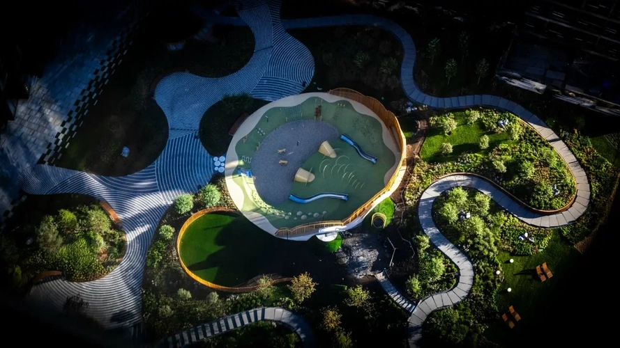 Живописный внутренний двор спроектирован с понимаем того, что дом не заканчивается за дверью квартиры. Его неотъемлемая и органичная часть – это пространство вокруг, уютное и впечатляющее. В центре этого пространства будет разбит живописный сад, здесь расположатся площадки для разных возрастных групп, где можно насладиться тишиной, пообщаться друг с другом, сделать утреннюю зарядку или просто отдохнуть.