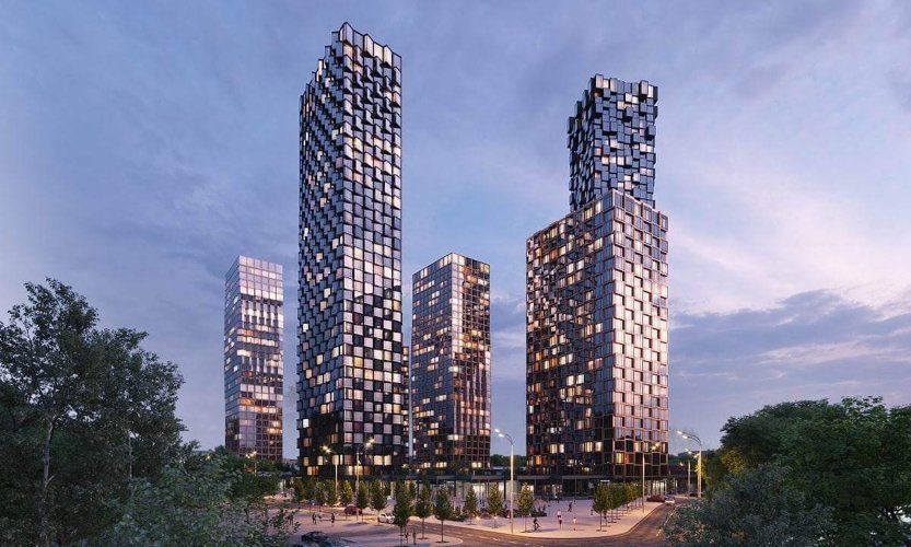 Проект из 6 ультрасовременных башен с яркими фасадами высотой до 48 этажей, отражающими передовые тренды в архитектуре. Ансамбль с панорамными окнами станет архитектурной достопримечательностью и значительно изменит акценты района. Комплекс отразит динамично меняющийся облик мегаполиса в своем инновационном фасаде.