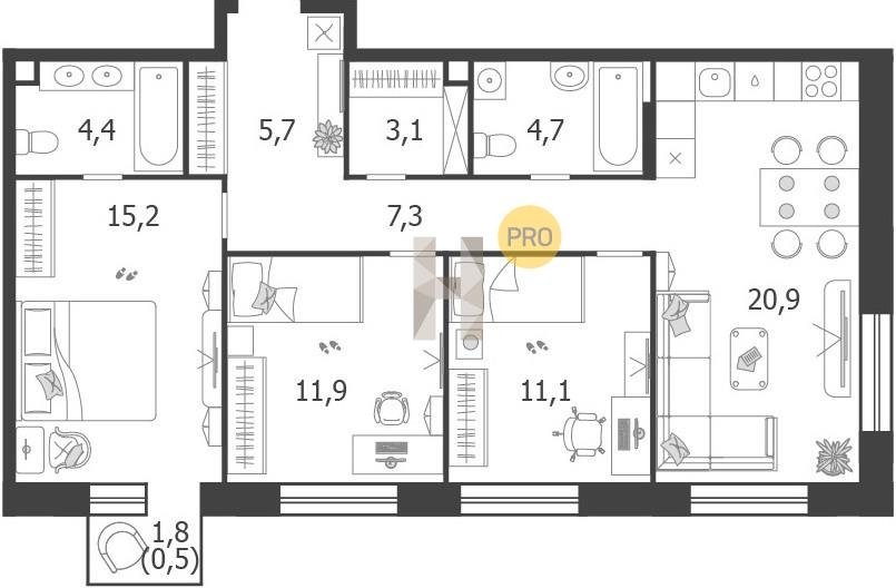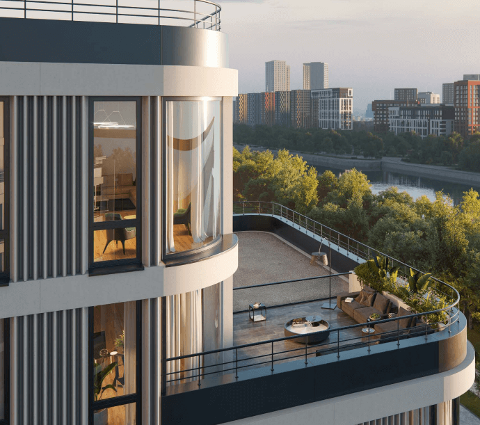 Большой выбор квартир с террасами — от 2-комнатных до 5-комнатных. Террасы, с которых открывается живописный вид на набережную Шагала и Москву-реку или внутренний двор. Двухуровневая 5-комнатная квартира с открытой террасой идеально подойдет большой семье, а также тем, кому нужен домашний офис или творческая студия — каждый уровень имеет отдельный вход. Единственная на этаже, такая квартира создает ощущение частного загородного дома.