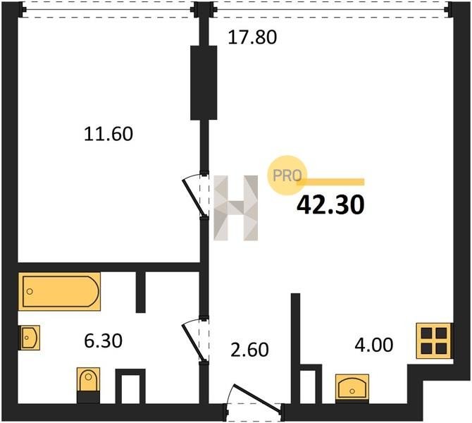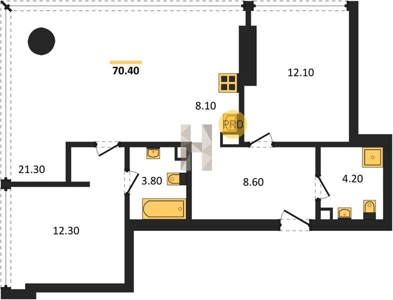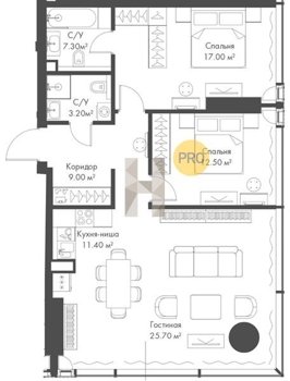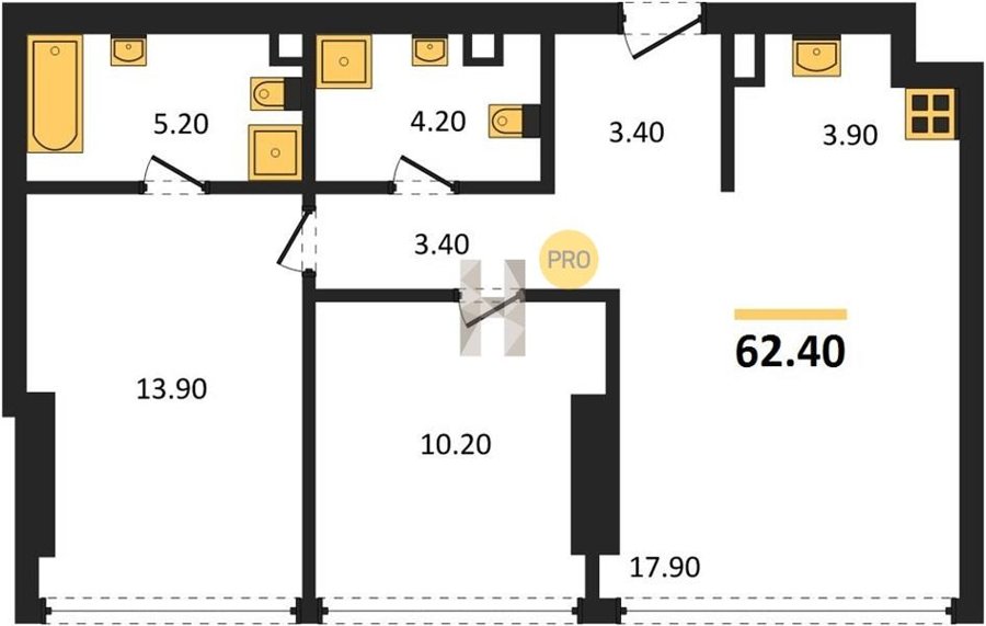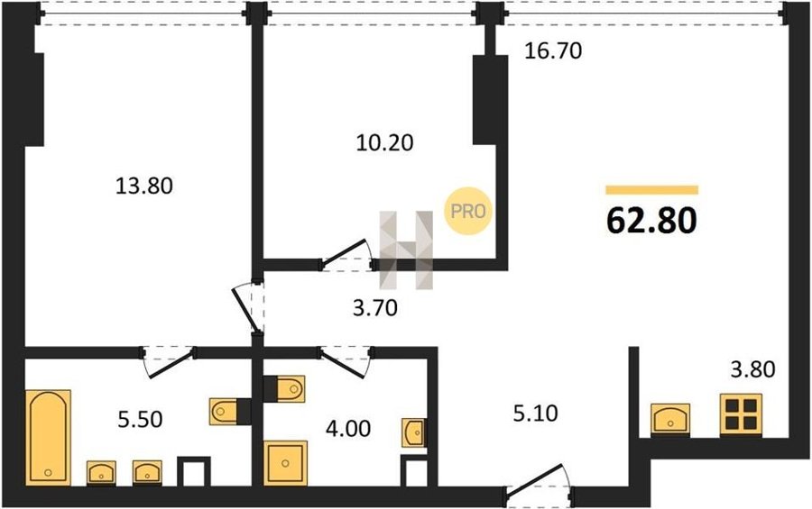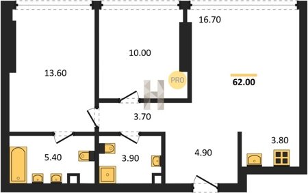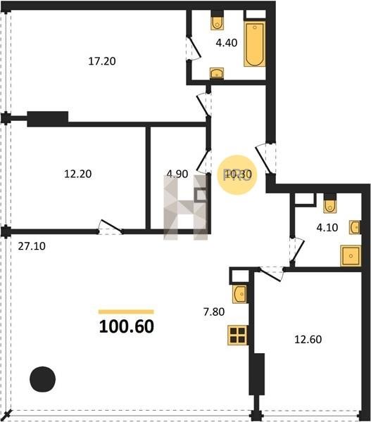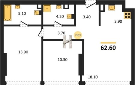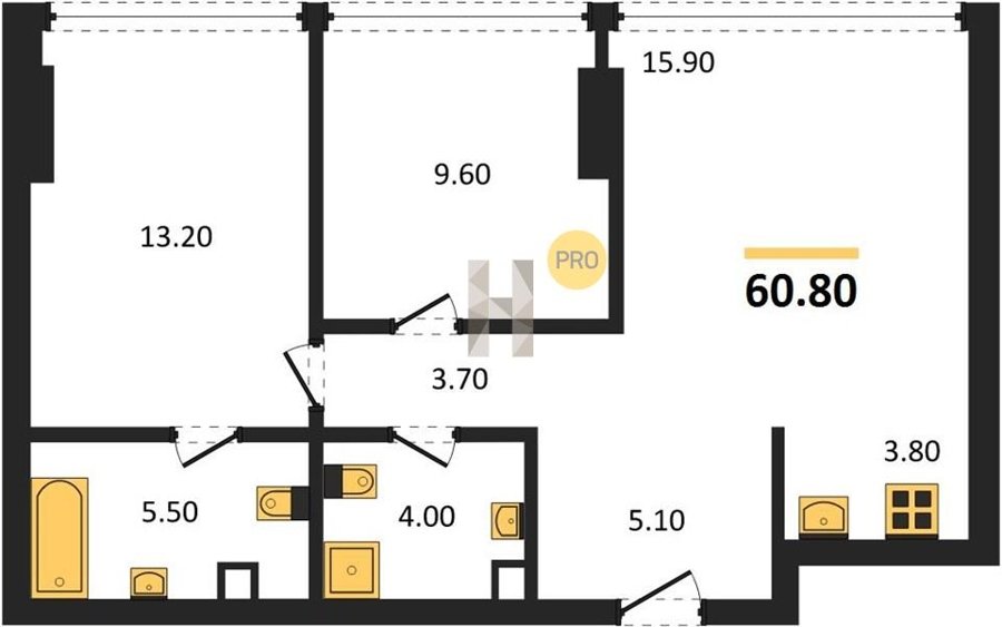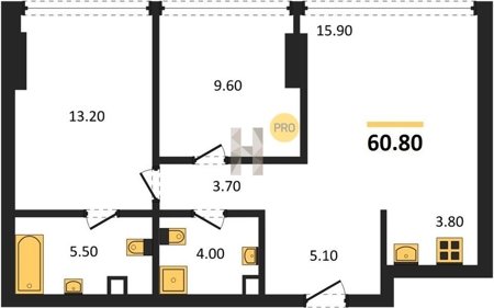 Площадь от 60.8 м2