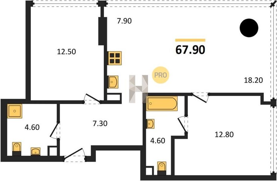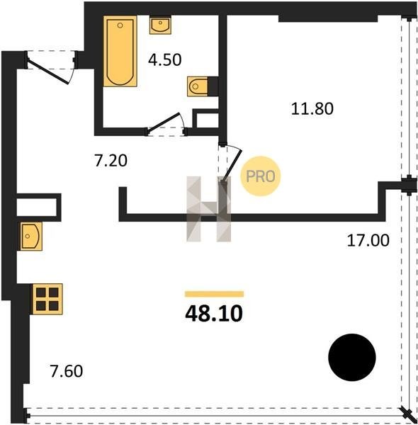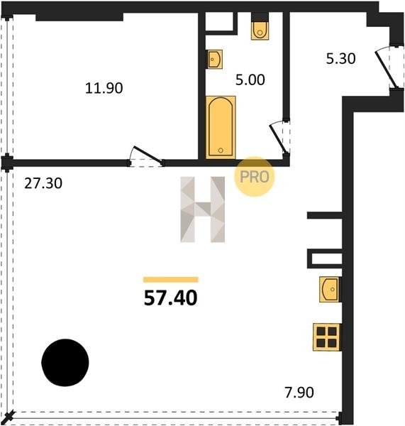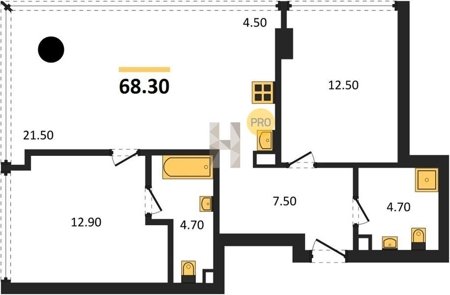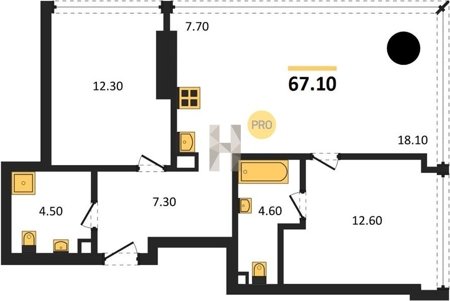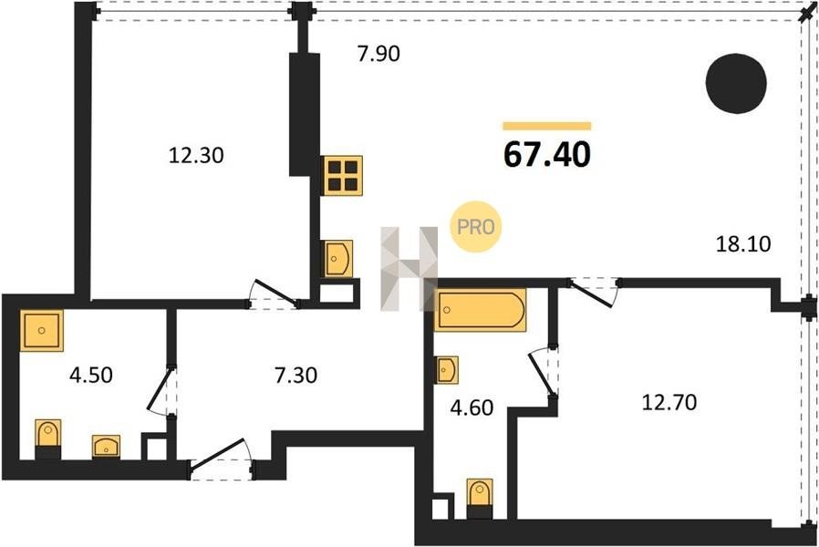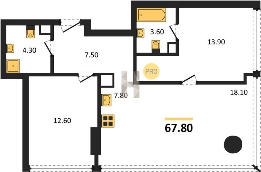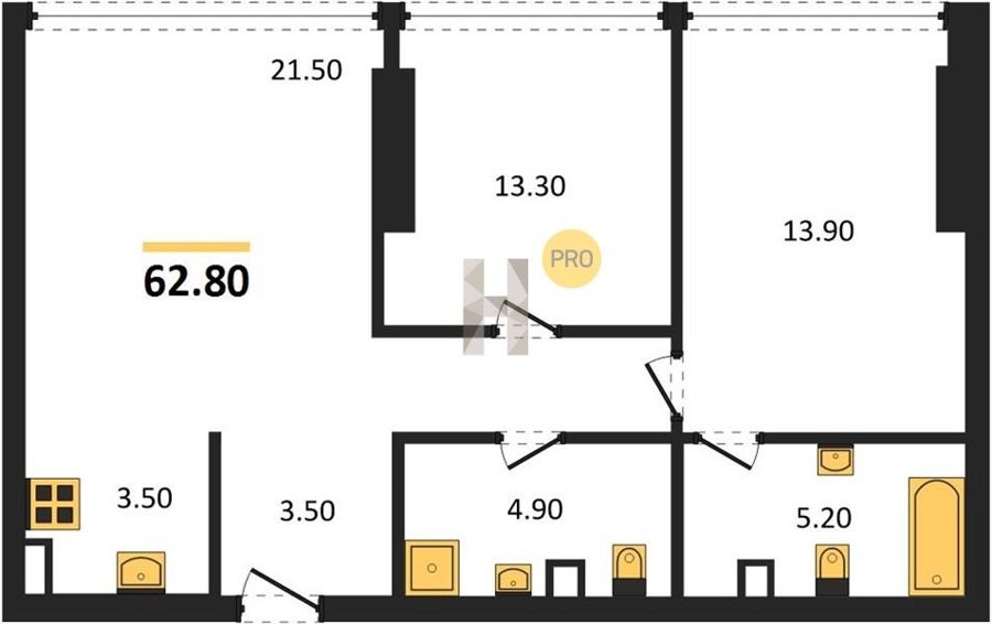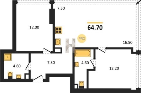 Площадь от 60.8 м2