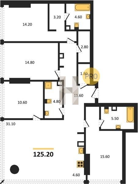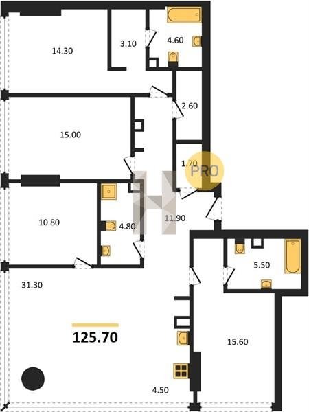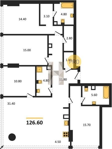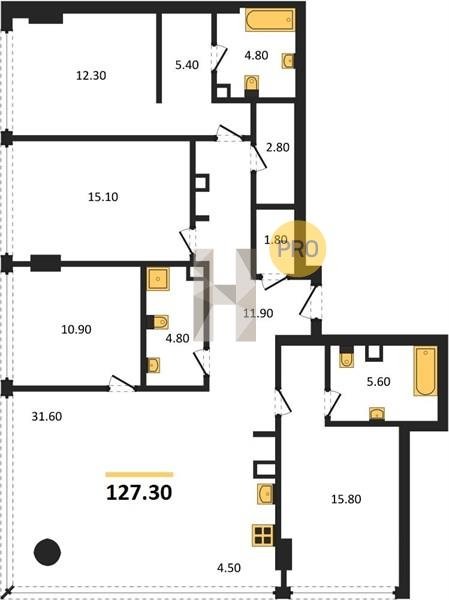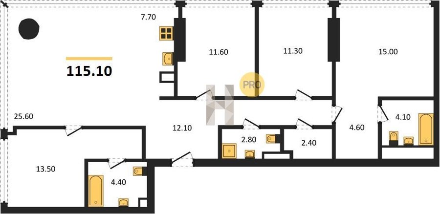 Площадь от 115.1 м2