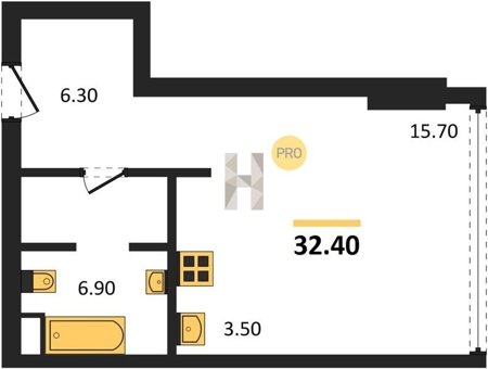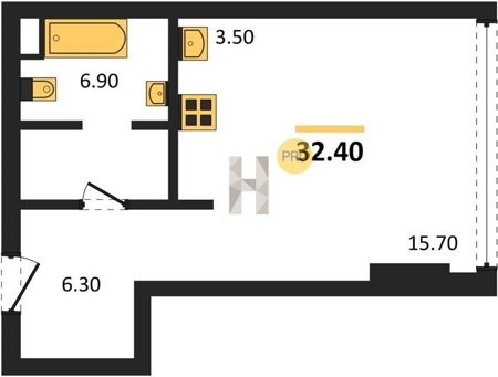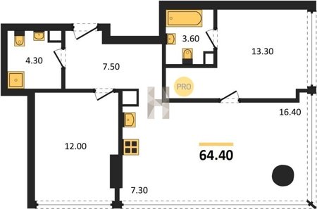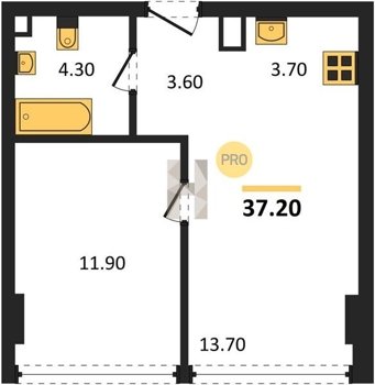 Площадь от 36.4 м2