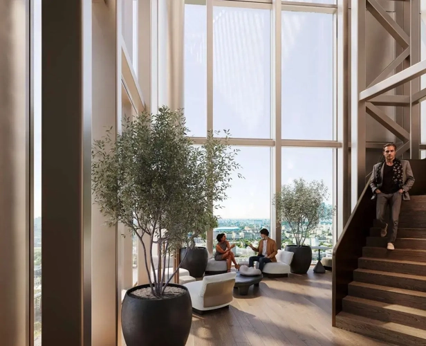На этом уровне располагаются кафе, рестораны, магазины, спортивный центр и выставочное пространство — они доступны как для резидентов, так и для соседей по району.