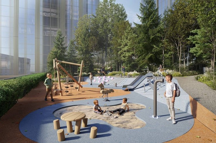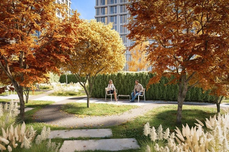 Территория внутреннего двора будет оборудована местами для прогулок и отдыха, детскими и спортивными площадками. Для удобства жителей и гостей комплекса предусмотрено центральное лобби, круглосуточный консьерж-сервис. На первых этажах домов разместятся магазины различного назначения, кафе и рестораны, аптеки и отделения банков.